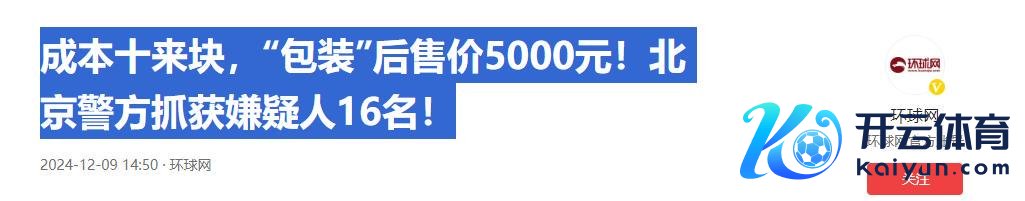 参考信息:环球网——成本十来块,“包装”后售价5000元!北京警方抓获嫌疑东谈主16名!