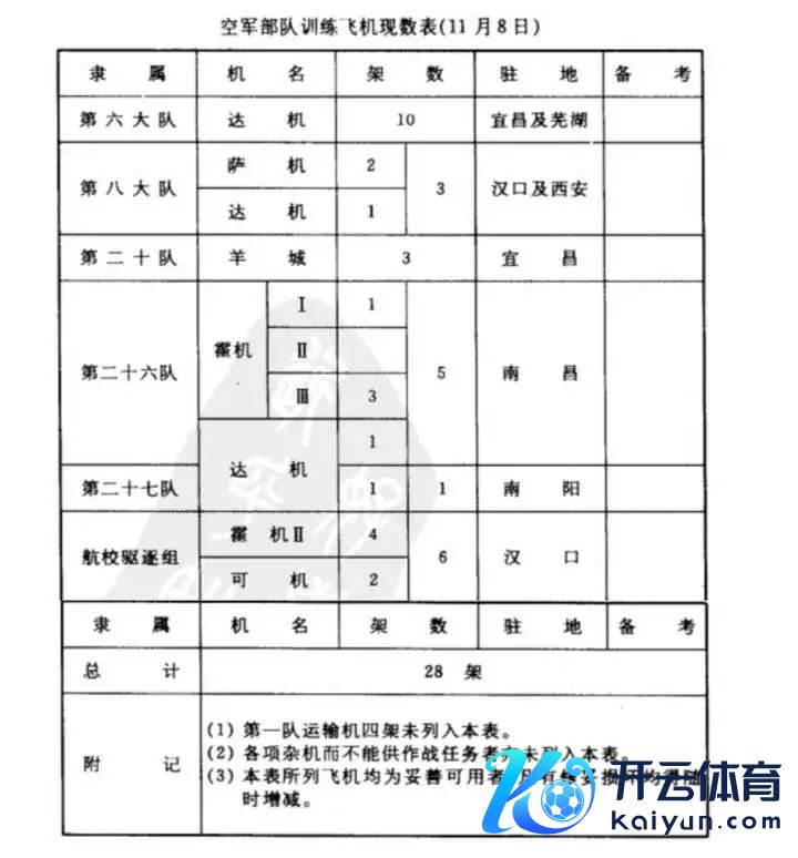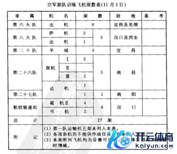 图20. 空军戎行测验飞机现数表(11月3日)