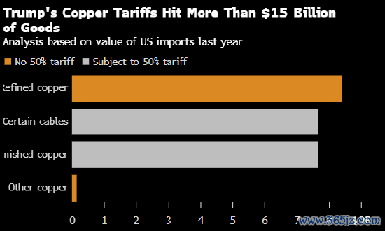 但还不啻于此。白宫条目官员在90天内拿出一项盘算,以对更多铜密集型制造居品征收关税。本年早些时候,特朗普大幅扩大了铝和钢铁关税的适用规模,将生息居品也纳入其中。